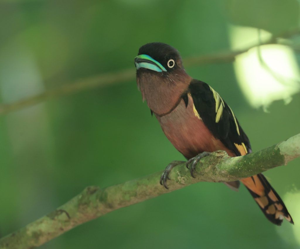 Days 2-6, Jambi Province, Sumatra Island [4N / 3D / 7S]. Domestic flight to Sumatra, then drive 8-hours, 200-km to Jambi Province. Photographic Targets: Schneider’s Pitta / Sumatran Cochoa / Salvadori’s Pheasant / Bronze-tailed Peacock-Pheasant / Rusty-breasted Wren Babbler / Shiny Whistling Thrush / Sumatran Whistling Thrushes / Salvadori’s Nightjar / Sumatran Frogmouth / Rajah Scops Owl.