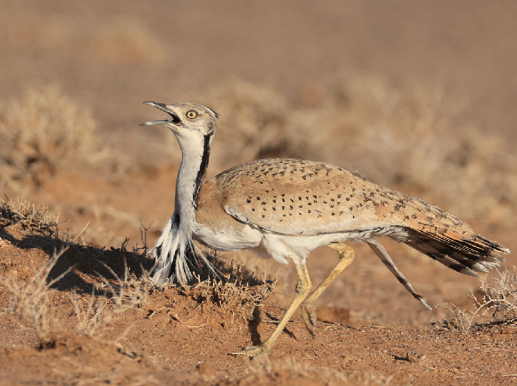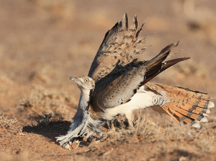 MacQueen’s Bustard: photographing these birds on their mating grounds in the fabulous habitat of the Gobi desert is quite simply a once-in-a lifetime experience.